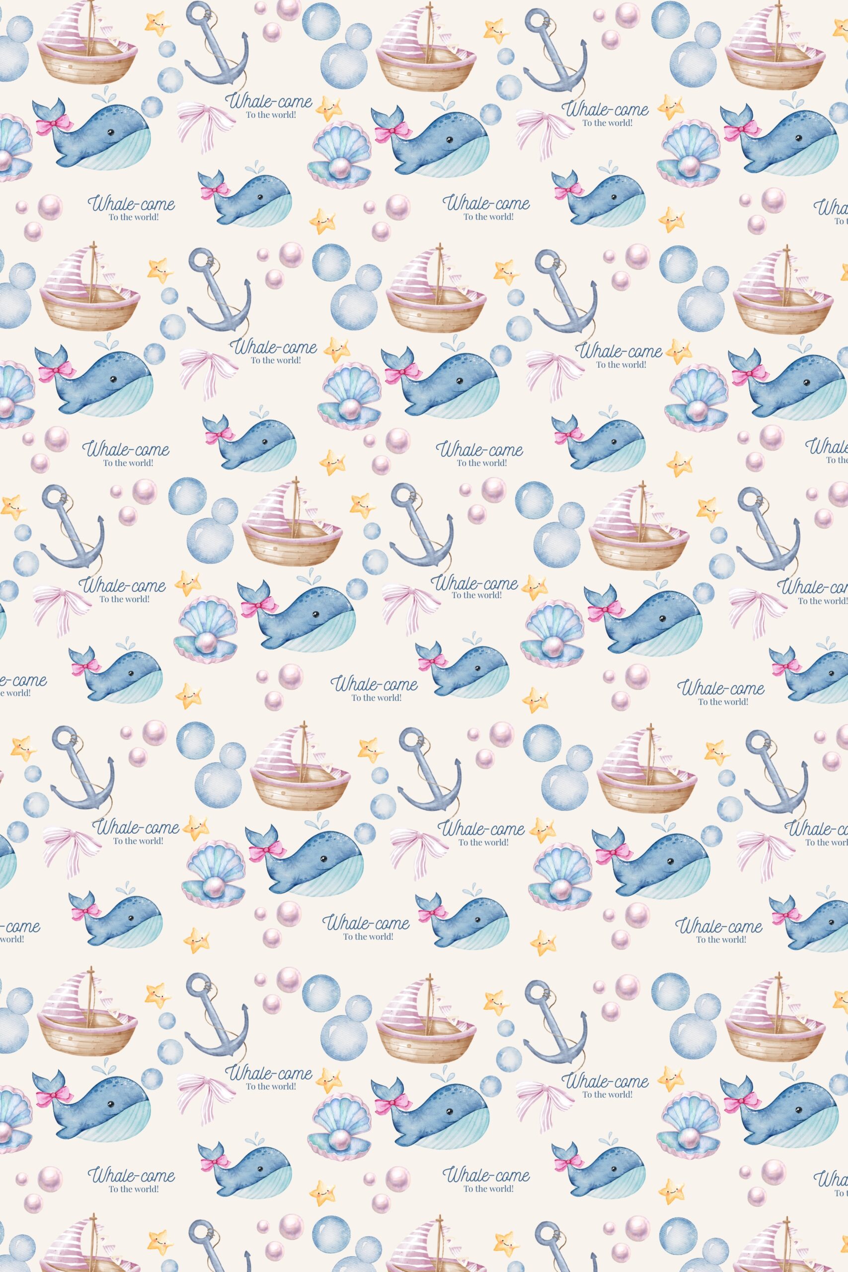 Celebrate new arrivals with Whale-come to the World! Discover the delightful Whale-come to the World pink wrapping paper adorned with cheerful whales, sailboats, bubbles, and pearls swimming across a soft backdrop, with delicate pink bows on the whales’ tails for the girly version. Playful, charming, and full of whimsy, it’s perfect for baby showers, birth gifts, or any “welcome to the world” celebration.